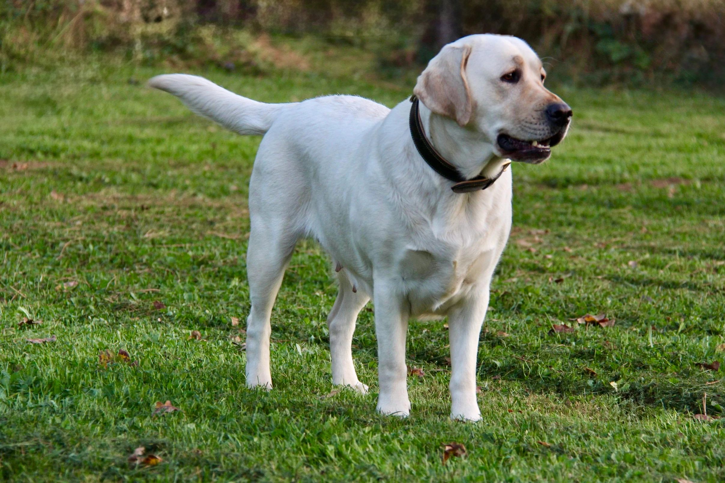 Zeus is a light yellow AKC English Labrador Retriever. He has a very laid back and mellow temperament. He is happy lying around relaxing but also loves hikes and swimming. His puppies have consistently had his calm temperament and have made great family dogs.